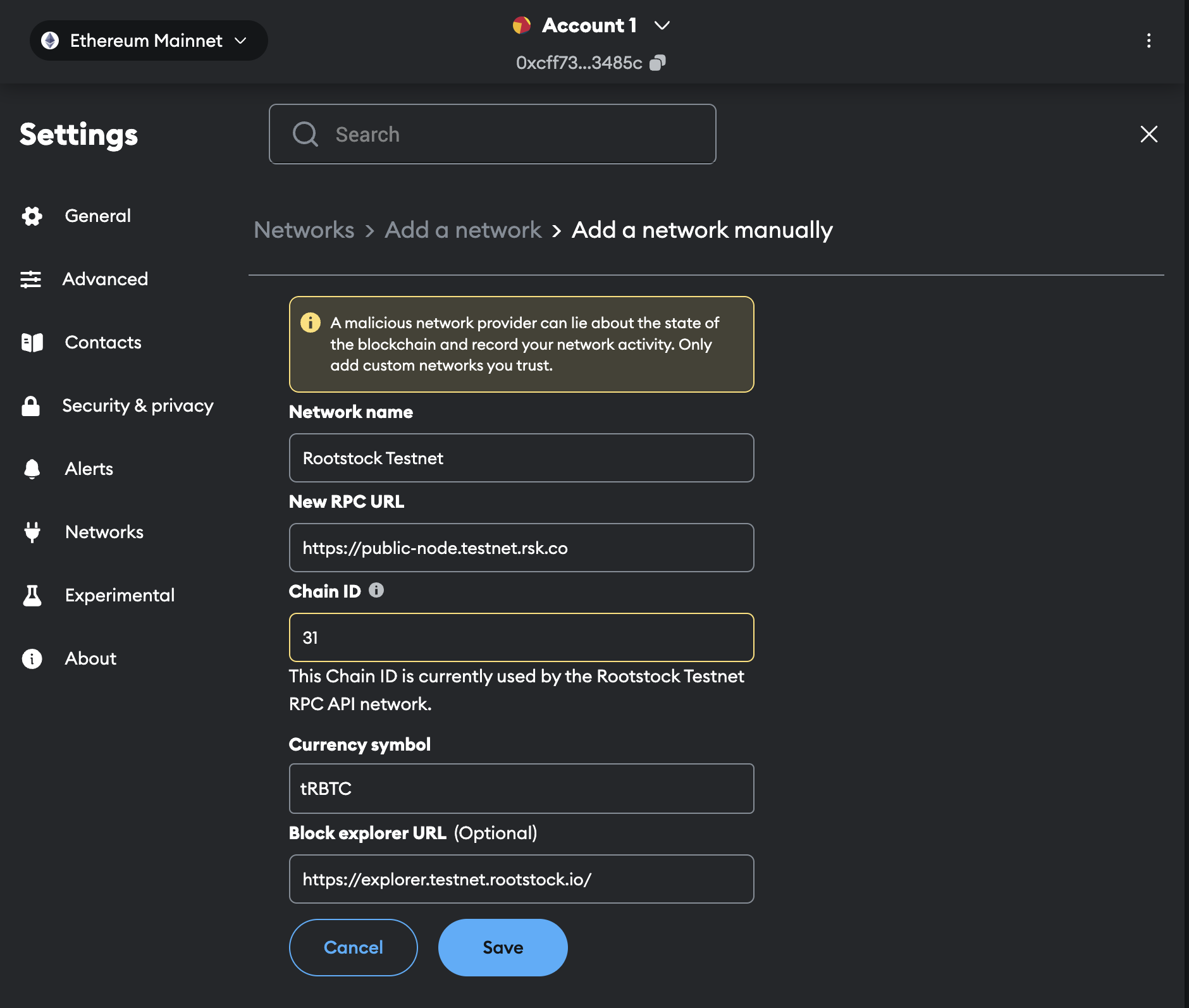 Option 2: Add Rootstock Networks to MetaMask Manually​