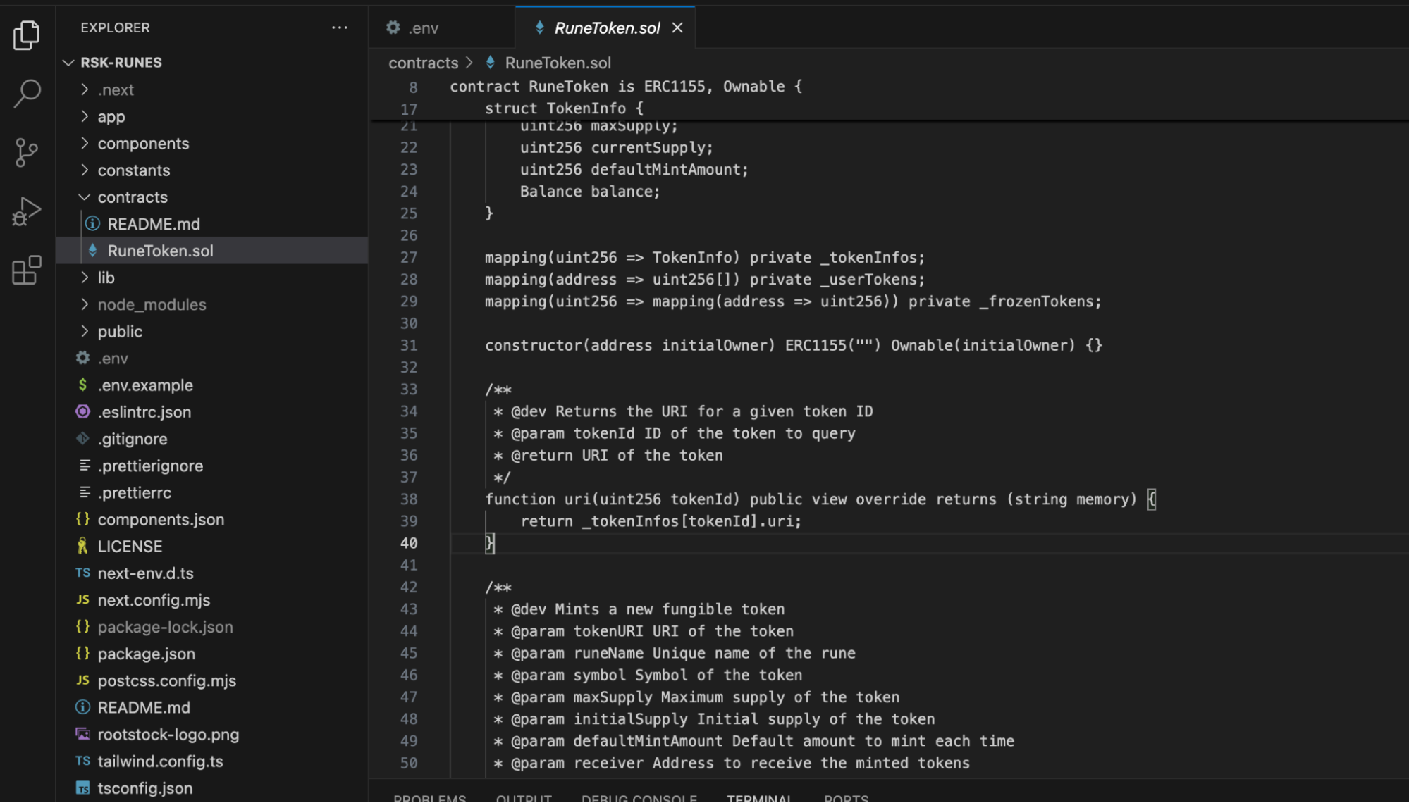 RuneToken.solfile from the RSK-RUNES repository under the contracts folder